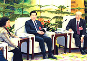 中國(guó)共産黨の胡錦濤総書記は3月11日第10期全人代第1回會(huì)議の臺(tái)灣代表団グループ會(huì)議に參加した際、「祖國(guó)大陸は一つの中國(guó)という原則の下に、著実かつ平等に協(xié)議を行い、臺(tái)灣當(dāng)局が関心を持つ問題を適切に処理し、対話と協(xié)議を通じて意見の食い違いを克服し、両岸関係の改善と発展を促していく用意がある。臺(tái)灣當(dāng)局が一つの中國(guó)の原則を認(rèn)めさえすれば、両岸の対話と交渉は再開できる」と述べた。
