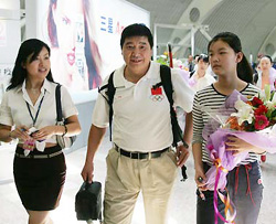 Возвращение в Пекин части делегации китайских спортсменов, участвовавших в соревнованиях на Олимпиаде в Афинах