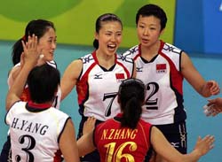 Китайская женская команда по волейболу вышла в четвертьфинал соревнований на Афинской Олимпиаде