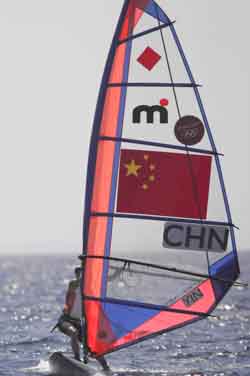 Китайская спортсменка Инь Цзянь завоевала серебро в соревнованиях по парусному спорту в классе "мистраль"