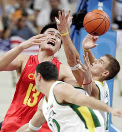 Китайские баскетболисты на Олимпиаде в Афинах вышли в четвертьфинал, победив команду Сербии-Черногории