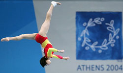 На закончившихся вчера вечером соревнованиях по спортивной гимнастике в абсолютном первенстве среди женщин 18-летняя китаянка Чжан Нань с суммой баллов 38,049 завоевала бронзовую медаль. Это первая медаль, которую заработали китайские гимнасты на афинской Олимпиаде.
