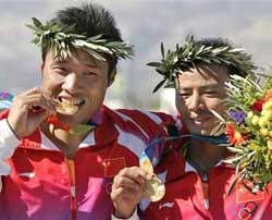 Китайский дуэт Мэн Гуаньлян и Ян Вэньцзюнь сегодня завоевал золотую медаль в финале олимпийских соревнований по гребле на каноэ-двойке среди мужчин на дистанции 500 метров.