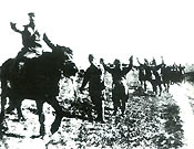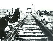 В ходе общего контрнаступления китайские солдаты и местное население разбирают железнодорожное полотно