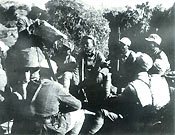 Солдаты 8-й армии, сражающиеся в тылу врага в Северном Китае слушают сообщение о победе в ходе ?Битвы ста полков?