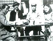 Мао Цзэдун и Чжу Дэ встречаются в Яньани с американским журналистом (второй слева)