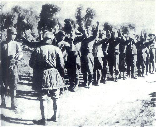 Японские солдаты сдаются китайской армии, занявшей уезд Цзоусянь провинции Шаньдун.