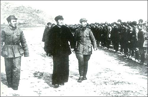 Мао Цзэдун и Чжу Дэ обходят войсковой строй. Справа – командир участвующей в масштабном контрнаступлении 359-й бригады Ван Чжэнь.