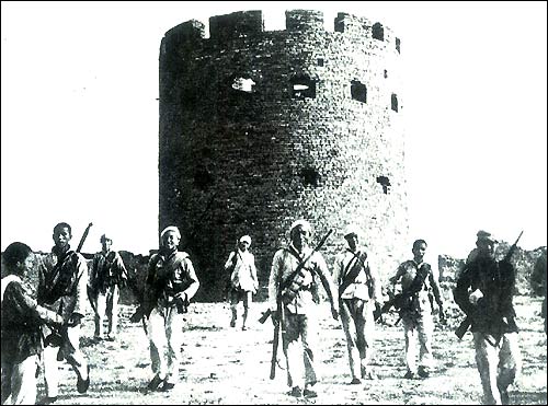 Солдаты 8-й армии занимают японское укрепление в г. Сяхэ уезда Цюйян.