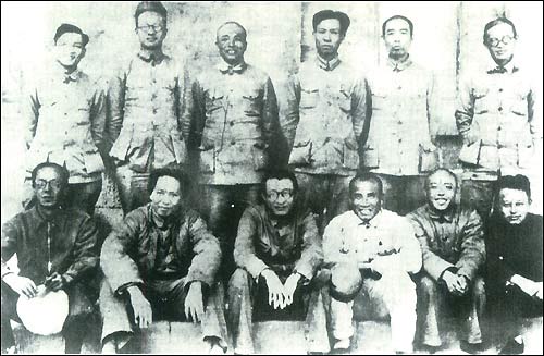 Групповое фото членов президиума 6-го Пленума ЦК КПК 6-го созыва. На фото: Мао Цзэдун (в первом ряду второй слева) и Чжу Дэ (третий справа), Чжоу Эньлай (второй ряд, второй справа) и Лю Шаоци (третий справа).