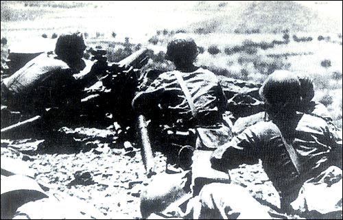 Китайские солдаты удерживают врага у подножья горы в северной Хунани (1943 г.)