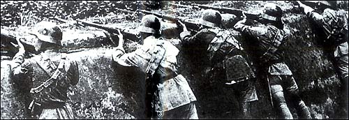 Китайские солдаты сражаются с японцами в Северном Китае.