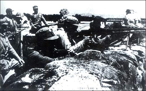 Солдаты 29-й армии сражаются с японскими войсками у моста Лугоуцяо.