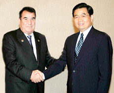 Председатель КНР Ху Цзиньтао 8 мая во второй половине дня в столице России встретился с президентом Туркменистана Сапармуратом Ниязовым.
