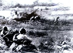 Уничтожающий огонь советской артиллерии по позициям японской армии