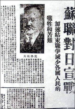 Китайские газеты напечатали сообщения об объявлении СССР войны Японии