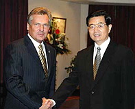 Ху Цзиньтао в беседе с А. Квасьневским отметил, что между Китаем и Польшей нет никаких неразрешенных вопросов или конфликта коренных интересов. Поддержание и развитие двусторонних отношений отвечают общим чаяниям и коренным интересам народов двух стран. Новый центральный руководящий коллектив Китая будет как и прежде прилагать усилия по упрочению и развитию дружественного сотрудничества с Польшей и укреплению взаимовыгодного взаимодействия между сторонами во всех областях. Председатель КНР по просьбе президента Польши рассказал о внутренней и внешней политике Китая и нынешнем социально-экономическом развитии.