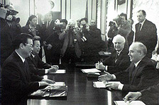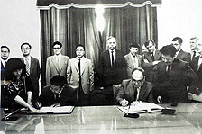 Подписание заместителем министра иностранных дел СССР Б. Н. Чаплиным и послом КНР в СССР Юй Хунляном Соглашения о взаимных поездках граждан.