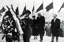 Президент Российской Федерации Б.Н. Ельцин с супругой и сопровождающими его лицами во время возложения венка к Памятнику народным героям на площади Тяньаньмэнь в Пекине.