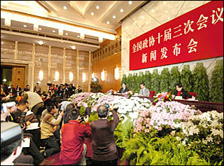 Wu se?aló que la octava sesión del X Comité Permanente de la CCPPCh recién clausurada aprobó la Agenda de la III Sesión de la X CCPPCh (proyecto), que propone una agenda principal de la presente Confenrencia siguiente: prestar oído y examinar y discutir el Informe sobre la Labor del Comité Permanente del Comité Nacional de la CCPPCh; escuchar y examinar y discutir el Informe sobre el Trabajo de Mociones a partir de la II Sesión del X CCPPCh rendido por el Comité Permanente del Comité Nacional de la CCPPCh. Asistir sin voz ni voto a la III Sesión de la X APN, discutir el Informe sobre la Labor del Gobierno, el Informe del Trabajo del Tribunal Popular Supremo y el Informe del Trabajo de la Fiscal Popular Suprema; escuchar las expllicaciones del proyecto de la Ley de Lucha contra la Separación del País y discutir el proyecto de esta ley; verificar y aprobar la Decisión Política de la III Sesión de la X CCPPCh, la Decisión sobre el Informe del Trabajo del Comité Permanente, la Decisión sobre el Informe de Trabajo de Mociones, el Informe sobre el Avance de la Verificación de las Mociones de la III Sesión de la X CCPPCh, y verificar y aprobar las disposiciones sobre el personal, las verificaciones y aprobaciones andedichas durarán 10 días. De acuedo con Wu Jianmin, los actos de inauguración y de clausura y las reuniones de discursos de la III Sesión de la X CCPPCh permitirán a los periodistas chinos y extranjeros cubrir entrevistas y algunas reuniones de discusión por grupos también serán abiertas para los medios de prensa nacionales y extranjeros. Durante el período de la sesión, se celebrarán dos conferencias de prensa para periodistas nacionales y extranjeros, en la que se invitarán a miembros de la CCPPCh a contestar las preguntas de los periodistas chinos y extranros sobre la garantía de la seguridad de cereales y la aceleración de la construcción de una sociedad tipo económico. Wu expresó: “Ahora todos los preparativos de la Conferencia están concluidos. Hasta las 12:00 de hoy, se han registrado 1.264 de los 2.295 miembros de la CCPPCh en el secretariado de la Conferencia”.