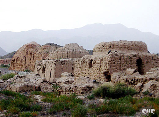 Tumbas antiguas en el Parque Shenmuyuan, en las monta?as Tianshan