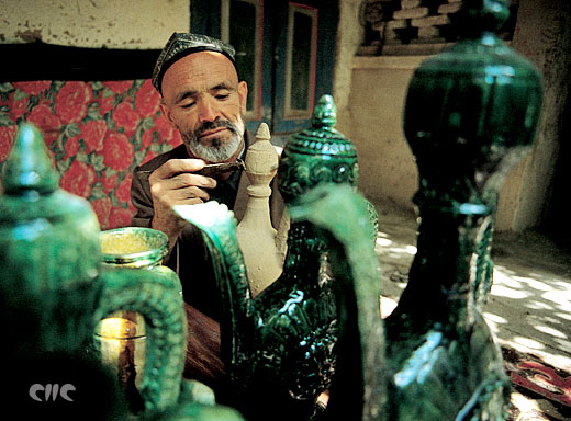 Alfareros uigures en Kashi, fabricando vasijas