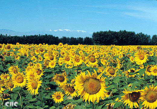 Campo de girasol en el distrito de Wenquan, prefectura de Bortala